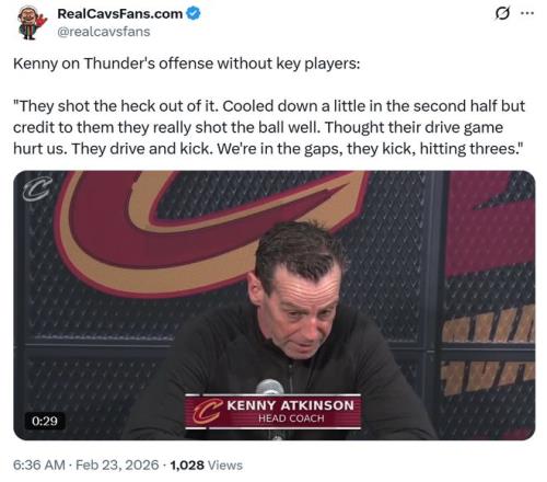 但隨著比賽的深入,騎士隊的防守伸縮性再度出現(xiàn)問題,正如賽后騎士主帥阿特金森所說,雷霆隊本場比賽神準的同時,不斷通過突破分球為外線創(chuàng)造機會,騎士沒能在收縮防守應對突破后,持續(xù)做好對于外線投射的干擾。