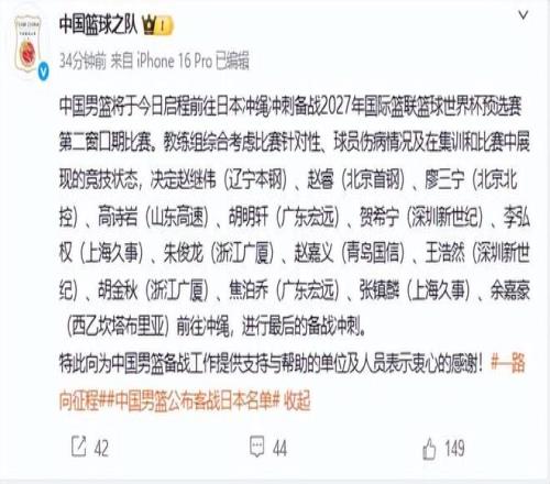 球迷期盼的中國男籃大名單,今天終于官宣了,他們是趙繼偉、趙睿、廖三寧、高詩巖、胡明軒、賀希寧、李弘權(quán)、朱俊龍、趙嘉義、王浩然、胡金秋、焦泊喬、張鎮(zhèn)麟、余嘉豪。這份大名單完全體現(xiàn)了主帥郭士強(qiáng)的特點,那就是迷戀舊部,不敢起用表現(xiàn)出色的新人。