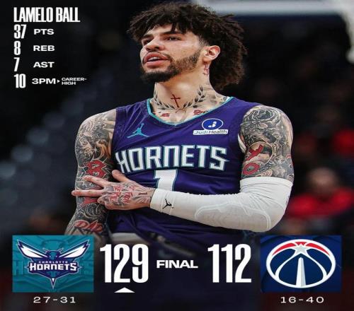 這場比賽,黃蜂當(dāng)家球星拉梅洛鮑爾打出了個(gè)人賽季最佳表現(xiàn)之一:全場只打了27分鐘,投籃20中12,三分15中10,罰球3中3,得到37分8籃板7助攻。