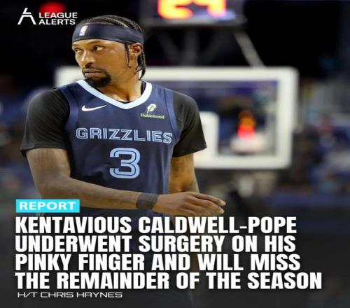 來自名記Chris Haynes的報(bào)道,灰熊后衛(wèi)考德威爾-波普將接受手指手術(shù),以矯正右手小指錯(cuò)位問題,本賽季剩余比賽都無法出戰(zhàn)。