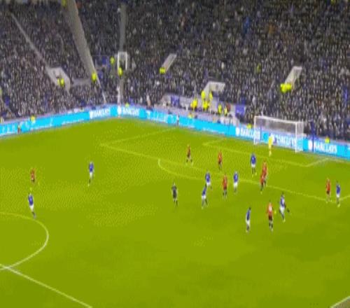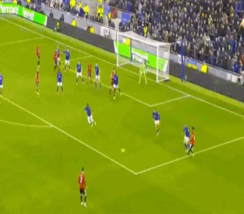 隨后曼聯的進攻一波接一波。達洛特凌空抽射擦柱而出,姆伯莫低射偏出立柱,B費弧頂爆射高出橫梁。半場下來,曼聯控場優勢明顯,卻始終差一腳終結。埃弗頓則在防守反擊中尋找機會,但節奏始終被壓制。基恩、布蘭斯韋特拼命封堵,皮克福德多次出擊穩定后防。