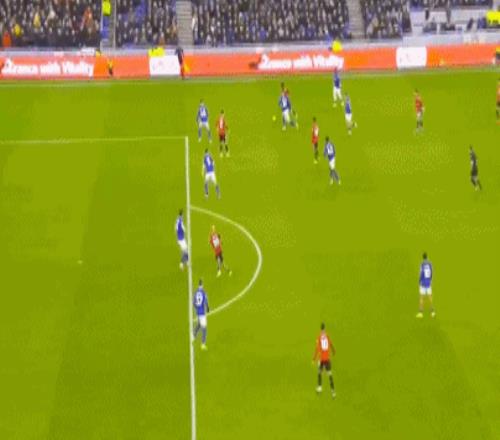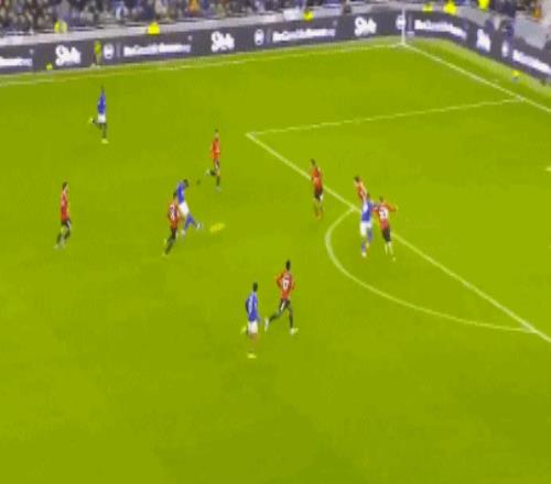 第30分鐘,迪亞洛右路突破被布蘭斯韋特拉拽,為曼聯拼得一個定位球機會。B費45°傳中被解圍,達洛特禁區外停球順勢凌空抽射,直奔球門右上角,最終擦著立柱稍稍偏出。