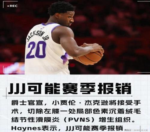 目前,小賈倫杰克遜已成功接受手術(shù),移除左膝內(nèi)一處局限性色素沉著絨毛結(jié)節(jié)性滑膜炎(PVNS)腫物。四周后,小賈倫杰克遜將接受傷情復(fù)查。在爵士僅剩25場比賽的情況下,本賽季我們恐怕很難再看到小賈倫杰克遜披掛上陣。所以,小賈倫杰克遜的賽季報銷十有八九會發(fā)生!
