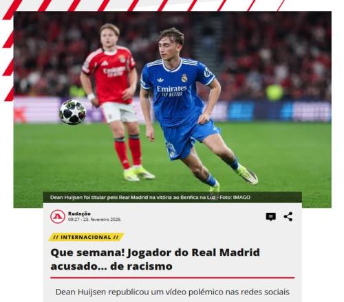 20歲的皇馬后衛赫伊森,真的攤上大事了。前不久,赫伊森在INS上轉發一條種族歧視的動態,引發軒然大波。近日,西班牙《馬卡報》、英國《每日郵報》、葡萄牙《球報》等全球媒體,紛紛報道赫伊森事件。
