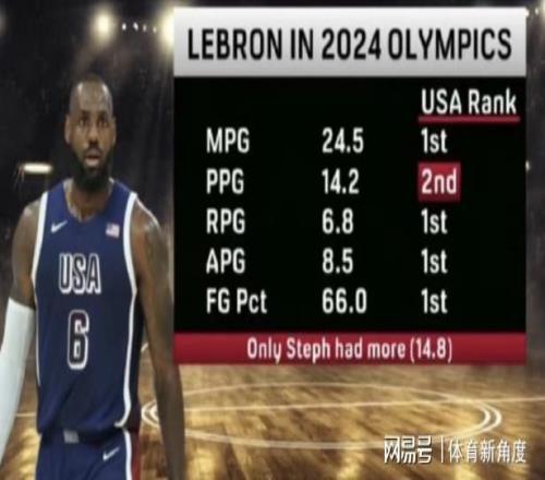 再把時光倒回前兩年,2024年巴黎奧運(yùn)會那可是熱鬧非凡。詹姆斯在奧運(yùn)會上那簡直就是“超級大魔王”般的存在,開幕式上,他昂首挺胸地舉著美國隊的旗幟,那仿佛整個世界都在他腳下。而且,他還榮獲了美國隊最佳運(yùn)動員的稱號,就像游戲里的MVP一樣閃耀。在賽場上,他場均上場24.5分鐘,妥妥的隊內(nèi)“勞模”第一名;場均能砍下14.2分,是隊里的得分“二把手”;場均抓下6.8個籃板,籃板王非他莫屬;場均送出8.5次助攻,傳球大師的名號可不是白叫的;投籃命中率高達(dá)66%,這命中率,就像開了掛一樣準(zhǔn)。