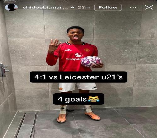 周一,當曼聯(lián)一線隊客場對陣埃弗頓時,小將奇多?奧比在U21對陣萊斯特城的比賽中狂轟4球。上賽季從阿森納加盟曼聯(lián)后,奧比就被球隊迅速提拔至一線隊,當時阿莫林的球隊正苦于鋒線無力。