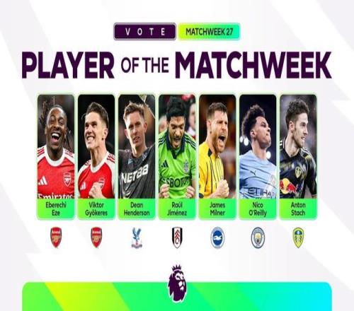 北京時間2月24日,英超官方公布了聯賽第27輪最佳球員候選名單,這7名球員為埃澤、哲凱賴什、迪恩-亨德森、勞爾-希門尼斯、米爾納、奧賴利、施塔赫。