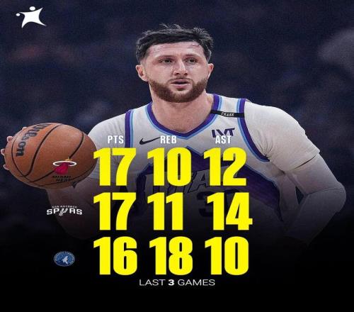 其中一月底,努爾基奇還曾連續三場拿下三雙: