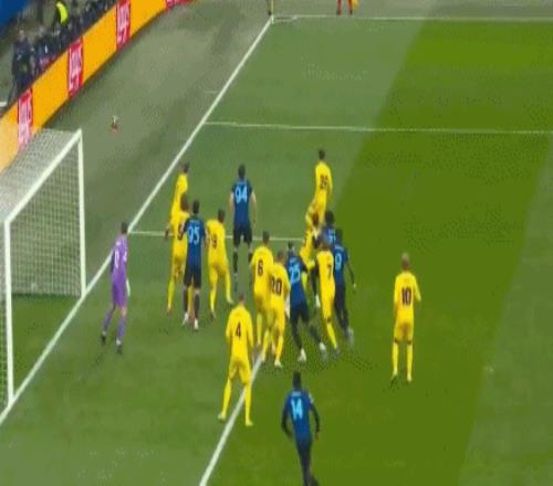 第50分鐘,國米獲得前場定位球,迪馬爾科直接攻門,打得太正被海金穩穩沒收。