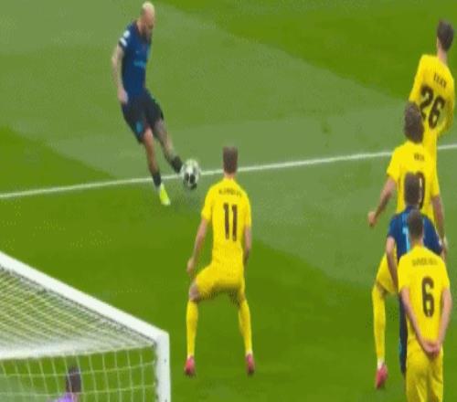 第42分鐘,弗拉泰西禁區右側傳中,擊中帕特里克-貝格,國米眾將認為對方手球,但裁判根據VAR意見判罰角球。