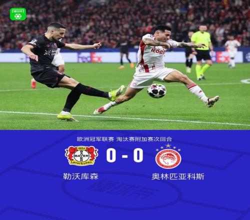 北京時間2月25日歐洲冠軍聯賽 淘汰賽附加賽次回合,勒沃庫森對陣奧林匹亞科斯。最終比分勒沃庫森 0-0 奧林匹亞科斯。兩回合總比分勒沃庫森2-0奧林匹亞科斯。