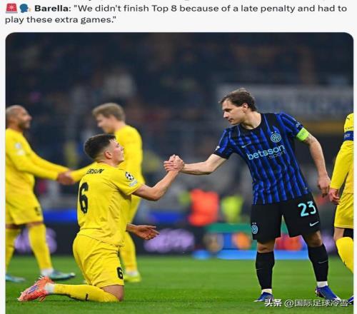 其一,是此戰佩戴國米隊長袖標的巴雷拉賽后引發極大爭議的表態,他先是將國米歐冠出局歸咎于“踢利物浦時完場前的點球,導致球隊被迫多踢兩場附加賽”,隨后談及本戰時表示:“像這樣輸掉比賽,是足球的一部分,這是可能發生的……我們努力了,但他們比我們更強。”
