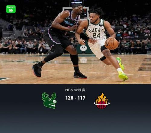 第四節雄鹿小凱文-波特拿下13分,熱火諾曼-鮑威爾拿下9分,最終雄鹿128-117戰勝熱火