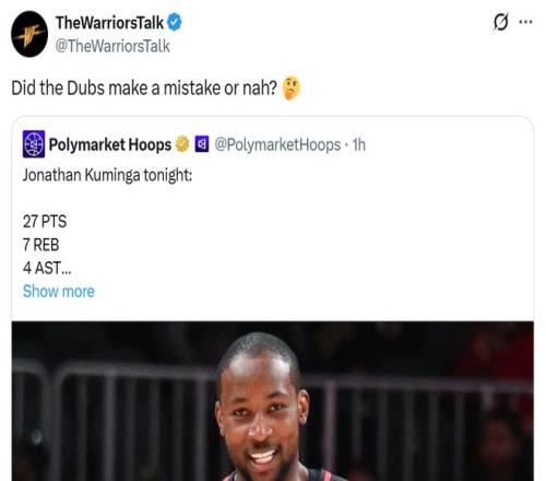 后勇士媒體TheWarriorsTalk也質(zhì)疑到:“勇士隊是不是犯了一個錯誤(交易庫明加)?”