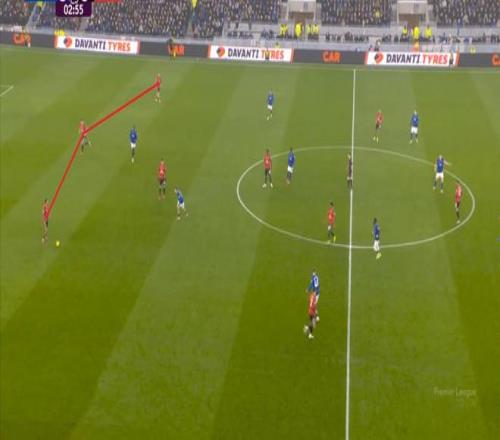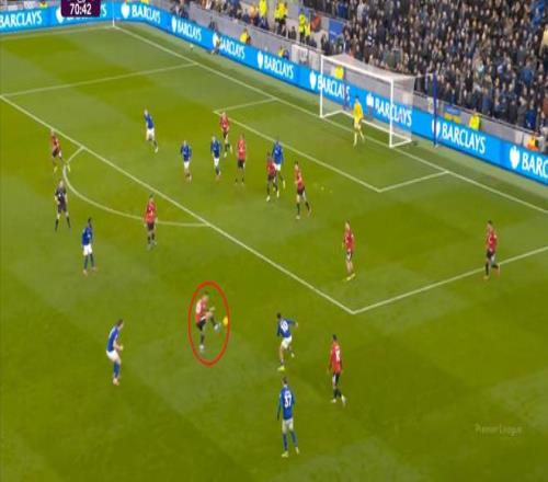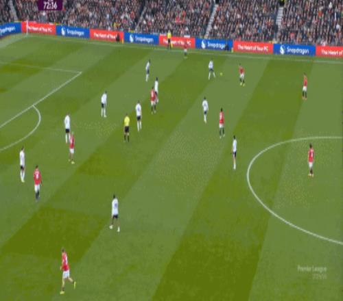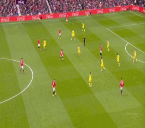 在沒有固定且典型的中鋒角色的情況下,曼聯實際上是在用跑動牽制對手,從而繞進兩線之間: