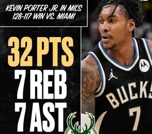 北京時間2月25日,NBA常規賽熱火客場對陣雄鹿,雄鹿在波特32+7+7出色表現引領下,全隊5人得分上雙最多領先12分優勢,最終雄鹿128-117戰勝熱火,雄鹿近9戰7勝反彈,熱火結束3連勝。