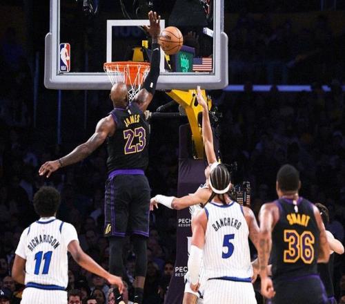 進入第三節,里夫斯罰球+助攻老詹飛扣,隨后撤步三分打停魔術,暫停回來里夫斯繼續強攻,湖人最多領先12分。但班凱羅又開始單打,從湖人防守這里找回自信了。此后貝恩和布萊克也多點開花,東契奇勉強單打效率很低,里夫斯也運球失誤。后半段班凱羅中投+打板拋投追到只差1分,東契奇拋投止血,班凱羅繼續造殺傷,三節打完,湖人80-79魔術。決戰第四節,兩隊初段陷入拉鋸戰,老詹連續上分,但湖人防守千瘡百孔,貝恩軍訓艾頓,貝恩超遠三分,隨后貝恩急停中投,大瓦格納和小卡特也多點開花。