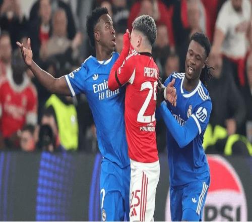 2月18日,歐冠附加賽首回合皇馬客場對陣本菲卡的比賽中,皇馬前鋒維尼修斯進球后以舞蹈慶祝,引發本菲卡球員不滿。本菲卡20歲球員普雷斯蒂安尼與維尼修斯對峙時用衣物遮擋嘴部進行辱罵,比賽一度中斷。