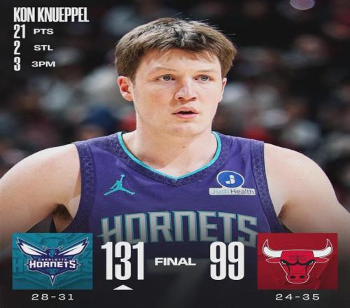 北京時(shí)間2月25日,NBA常規(guī)賽,黃蜂131-99大勝公牛。黃蜂4號(hào)秀克尼佩爾出戰(zhàn)22分31秒,投籃12中7,三分6中3,罰球4中4,砍下21分1板2助2斷,正負(fù)值+24全場第二高??四崤鍫?7次單場20+,在2025屆新秀中排第一。