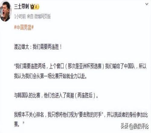 世預(yù)賽第二個(gè)窗口期,中國(guó)男籃對(duì)陣日本男籃將于2月26日正式開打,賽前,日本男籃核心渡邊雄太接受媒體采訪,談到即將主場(chǎng)對(duì)陣中國(guó)男籃的話題。