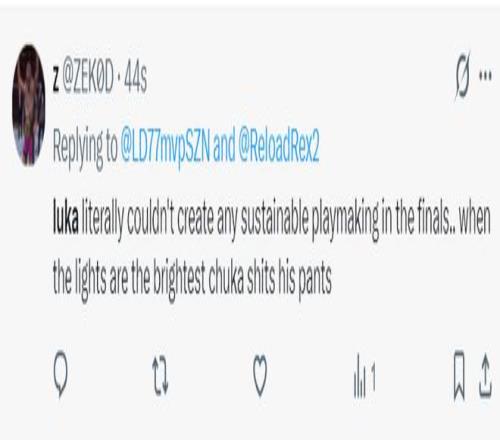 湖蜜:東契奇在關(guān)鍵比賽根本無法展現(xiàn)出任何持久的組織進(jìn)攻才能,當(dāng)聚光燈都打在他身上時,他竟然尿褲子不敢投。
