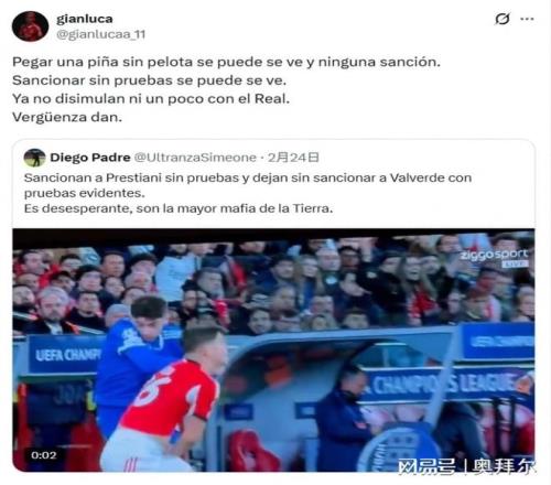 周三,歐足聯宣布駁回本菲卡的上訴,維持對普雷斯蒂安尼臨時禁賽1場的處罰。普雷斯蒂安尼在社交媒體炮轟歐足聯,“毫不掩飾對皇馬的偏袒”。