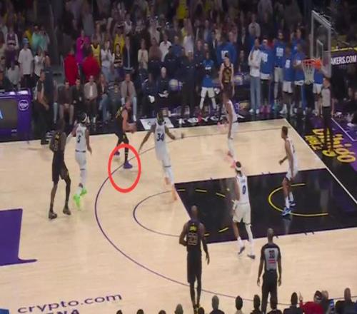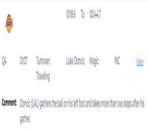 第一次漏判發(fā)生在距離比賽結(jié)束還有1分7秒,東契奇在左腳觸地時(shí)完成合球,合球后多走了兩步以上,構(gòu)成走步違例。裁判沒(méi)有響哨,這是一次漏吹的走步違例,湖人獲利,魔術(shù)吃虧。