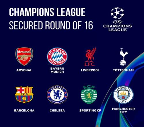此前,阿森納、拜仁、利物浦、熱刺、巴薩、切爾西、葡萄牙體育、曼城通過聯賽階段鎖定積分榜前8名,從而直通16強。