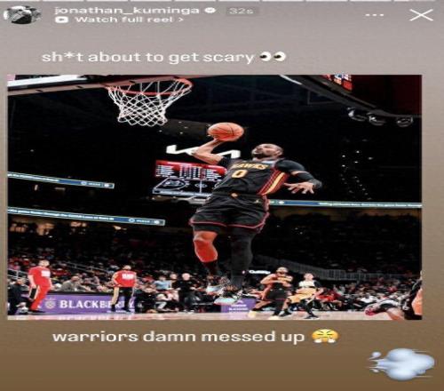 北京時間2月26日,老鷹新援庫明加更新社媒,曬出了自己老鷹生涯首秀扣籃的一幕,并配文寫道:“好戲要來了!勇士真的把事情搞砸了!”雖然庫明加很快刪掉了這一動態,但還是被不少球迷截圖了。
