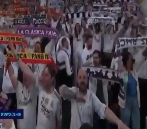 在本場比賽開場期間,伯納烏球場看臺上的球迷們打出了“反對種族主義”和“尊重”兩條橫幅來聲援首回合比賽中疑似遭遇種族歧視的維尼修斯,電視轉(zhuǎn)播鏡頭在賽前也捕捉到了這一幕。