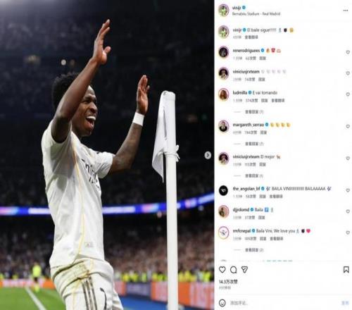 這是維尼修斯連續第5場破門。賽后他在社交媒體曬出角旗桿跳舞慶祝的照片,配文“舞蹈繼續!”引發熱議。評論區依然充斥著“猴子”和“香蕉”的表情,但數據不會說謊,這是維尼修斯在歐冠淘汰賽打進的第14粒進球,超越內馬爾的13球,成為巴西球員歐冠淘汰賽歷史射手王。