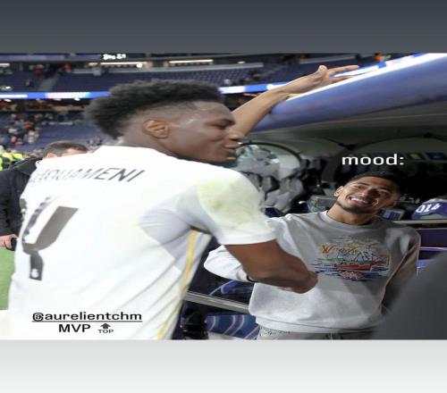 貝林厄姆社媒分享楚阿梅尼照片:MVP 懂球帝 2026-02-26 13:16:11 北京時間2月26日凌晨,歐冠淘汰賽附加賽次回合,皇家馬德里坐鎮主場迎戰本菲卡,最終皇馬2-1,總比分3-1擊敗本菲卡晉級。賽后,貝林厄姆在自己的社交媒體上分享了一張自己與楚阿梅尼握手的照片,并在圖中寫道MVP,然后自己臉上方則寫著自己的心情就像這樣。在主場對陣本菲卡的比賽中,本菲卡第14分鐘由拉法-席爾瓦率先破門,第16分鐘,楚阿梅尼推桿破門幫助球隊扳平比分。西甲免費觀看_mvp免費觀看_楚阿梅尼免費觀看_西甲高清在線_mvp高清在線_楚阿梅尼高清在線 西甲 mvp 楚阿梅尼 本菲卡隊 皇家馬德里 裘德·貝林厄姆 歐冠淘汰賽附加賽 上一篇: 庫爾圖瓦曬圖:只要全隊同心、有球迷的支持,我們不可戰勝 下一篇: 自米利唐以來,楚阿梅尼是首位在淘汰賽進歐冠首球的皇馬球員