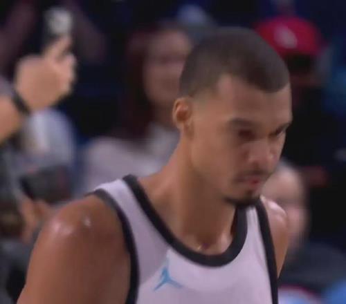 文班亞馬,在面對美國老人隊的比賽中,一人頂著詹杜卡的高壓防守8中6砍下19分!攻防一體!