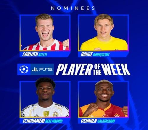 歐冠本周最佳球員候選:瑟洛特、海于格、楚阿梅尼、奧斯梅恩 懂球帝 2026-02-26 16:17:53 歐冠淘汰賽附加賽次回合比賽全部結束,歐冠聯賽官方公布了本周最佳球員候選,分別是瑟洛特、海于格、楚阿梅尼和奧斯梅恩。歐冠官方本周最佳球員候選瑟洛特 上演帽子戲法助馬德里競技主場4-1擊敗布魯日海于格 一傳一射助博德閃耀客場2-1戰勝國際米蘭楚阿梅尼 打入一球助皇家馬德里主場2-1擊敗本菲卡奧斯梅恩 打入一球助加拉塔薩雷客場2-3尤文圖斯,總比分7-5晉級歐聯免費觀看_歐冠免費觀看_瑟洛特免費觀看_歐聯高清在線_歐冠高清在線_瑟洛特高清在線 歐聯 歐冠 瑟洛特 海于格 楚阿梅尼 尤文圖斯隊 維克多·奧斯梅恩 上一篇: 拉法席爾瓦:我們打出了一場精彩的比賽,與皇馬硬碰硬較量 下一篇: 加拉塔薩雷主帥布魯克:一支土耳其球隊進入歐冠16強意義重大