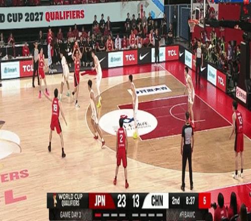 日本男籃連續前場板二次進攻得分!中國男籃15-27日本