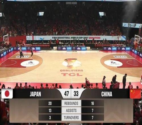 后半節趙睿依靠個人能力連造6罰,李弘權飚進底角三分,王浩然擋拆下順得手,日本隊繼續通過靈活的跑動+傳切+搶斷快攻頻頻在籃下制造殺傷,保持雙位數領先,次節中國隊再輸4分,半場33-47落后日本。