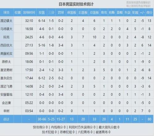 中國男籃第二節得到22分,單節輸了4分。半場戰罷,中國男籃33-47落后14分,趙睿和廖三寧各砍8分。西田優大12分2板2助、渡邊雄太11分。下半場剛打了2分鐘,趙睿4犯被趙繼偉換下。中國男籃注意收縮籃下,打出一波13-0!