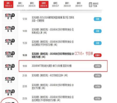 原定于CCTV5播出的WTT新加坡大滿貫系列賽事,包括王曼昱VS申裕斌這一焦點戰,整體遷移至CCTV5+頻道同步直播,畫面質量、解說陣容與互動體驗全面對標主頻道。