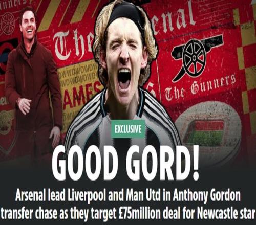 25歲的戈登,成為眾多豪門追逐的目標。2月27日,《太陽報》透露,阿森納、曼聯、利物浦3大豪門,同時盯上戈登。紐卡給戈登的定價接近1億英鎊,這超過阿森納的報價(7500-8000萬英鎊)。