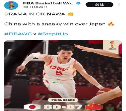 目前FIBA官方已經將文案修改為了:“沖繩神劇本!中國男籃在下半場翻盤,擊敗日本隊。”