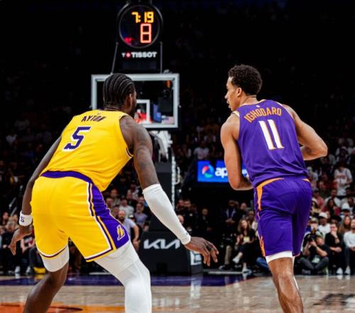 連關鍵時刻都不會打了。上一場惜敗魔術后,隊內更衣室氣氛并不好,里夫斯甚至拒絕接受采訪,東契奇也承認和里夫斯+詹姆斯同時在場時,需要考慮很多問題。但湖人最大的問題還是內線,艾頓已經支撐不起首發位置,相比之下,海斯成了球隊內線的穩定支撐。太陽這邊,布克臀部傷勢至少休戰到3月初;布魯克斯遭遇骨折,至少休戰到3月底,就剩杰倫格林帶隊?;仡櫼幌卤荣悾_場奧尼爾就命中三分,東契奇跳投+里夫斯喂餅老詹,鄧恩逼迫東契奇踩線失誤,里夫斯被斷,格林和馬威繼續上分。東契奇拋投止血,但湖人進攻啞火。
