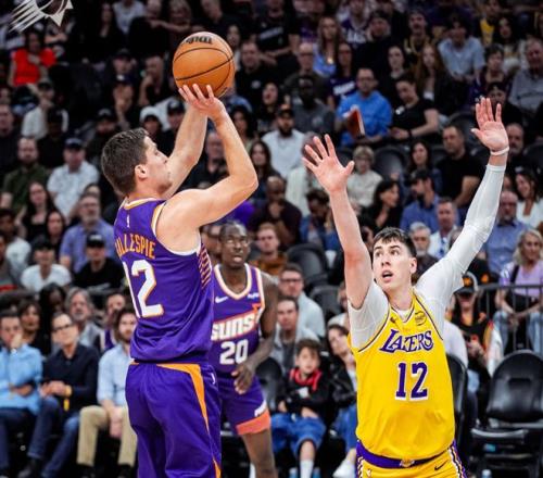 鄧恩內外開花,吉萊斯皮續上三分球,太陽很快拉開分差。中段老詹造殺傷+反擊上籃,東契奇和肯納德連續得分幫助湖人反超。此后拉拉維亞造殺傷,東契奇繼續單打,節末海斯補籃+肯納德上籃,第一節湖人27-22領先。進入第二節,阿倫轟進超遠三分+點名單吃艾頓,科菲和吉萊斯皮也下起三分雨,老詹在場這段時間,一直輸分!中段布耶造三分犯規,杰倫格林壓哨強行轟三分球,加上奧尼爾的空位三分,太陽瞬間拉開10分分差。后半段拉拉維亞和里夫斯內外開花,東契奇開始單打,迎著格林就扔三分球。