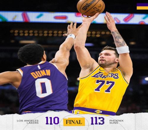 NBA常規賽繼續進行,洛杉磯湖人隊(34勝24負)繼續連敗。雖然東契奇得到41分、8個籃板和8次助攻,他率隊第四節化解兩位數落后追平,但奧尼爾投中三分準絕殺,里夫斯錯失扳平三分,湖人隊在客場以110-113不敵菲尼克斯太陽隊(34勝26負)。太陽隊結束2連敗,湖人隊遭遇3連敗。
