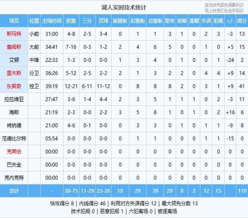 湖人:東契奇41分8板8助2斷、詹姆斯15分6板5助、里夫斯14分3板2助2斷、斯瑪特13分1板3助、拉拉維亞11分5板1助、肯納德8分3板、海斯6分8板1助、艾頓2分4板