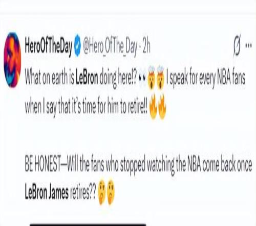 詹黑媒體:詹姆斯到底在這里干什么,我代表所有的NBA球迷向聯盟建議讓勒布朗退役吧!誠實一點吧,詹姆斯真的應該退役了,他離開聯盟那些想看NBA的人才會回來。