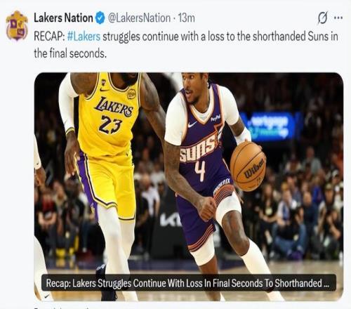 北京時間2月27日,太陽主場113-110準絕殺湖人,此役后湖人吞下三連敗,更為慘烈的是湖人連續(xù)兩場比賽被對手準絕殺。此役湖人一度領(lǐng)先13分之多,可第三節(jié)詹姆斯下場2分鐘就被打10-0崩盤,末節(jié)湖人艱難抹平分差,只可惜小奧尼爾0.9秒完成了準絕殺的三分。