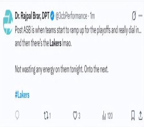 賽后專家Rajpal 寫道:在常規(guī)賽的最后階段各隊都在為季后賽做準備,全力以赴。。。。而湖人真實讓人捧腹大笑。我們不該對他們抱有期待,接著往下走吧。