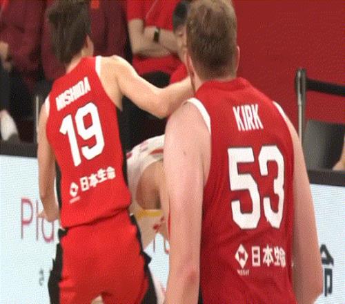 隨后胡金秋被日本隊歸化球員再次用膝蓋頂撞肚子,后者惡人先告狀,反而在胡金秋舉起球的瞬間,順勢倒地。日本隊主教練申請挑戰并成功,主裁判心領神會,直接給了胡金秋一個違體犯規。