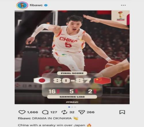 遺憾的是,國際籃聯賽后在官網點評中國男籃的勝利時,用“中國男籃從日本偷走一場勝利”來形容!