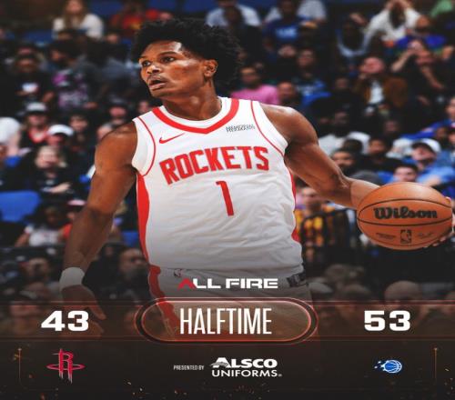 魔術隊的貝恩上半場得到17分,班凱羅得到8分;火箭隊的杜蘭特得到14分,申京得到8分。